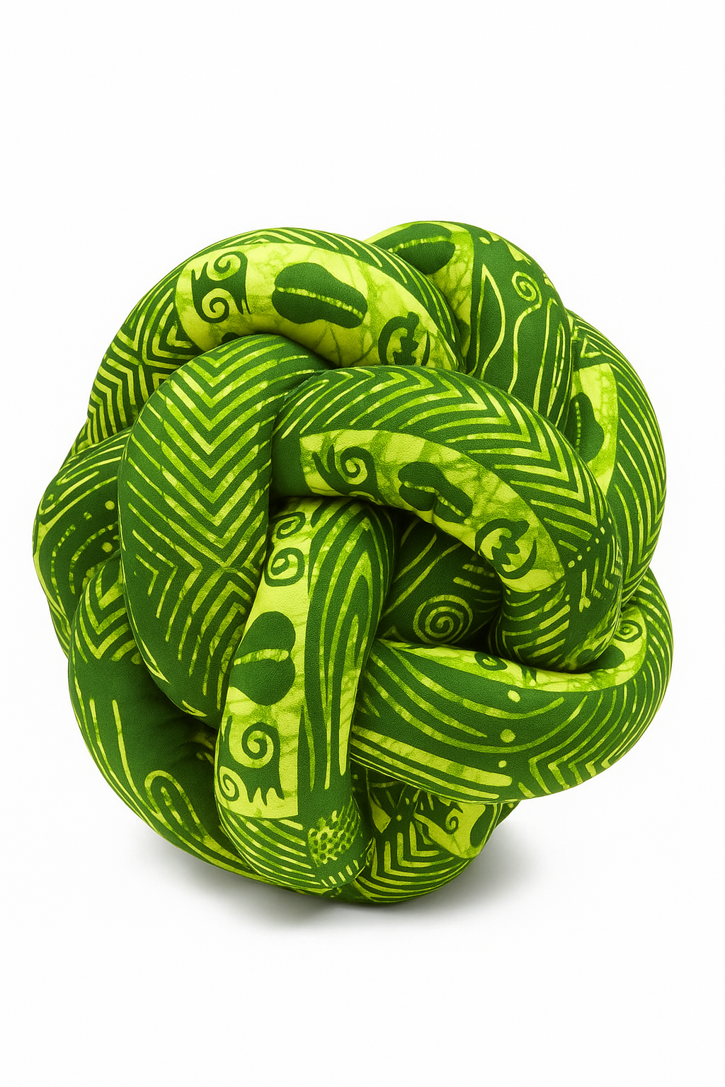 Beautifully handcrafted round knot cushions. Made from vibrant cultural fabric, this cushion blends traditional pattern design with a contemporary knot shape that’s both eye-catching and cozy.